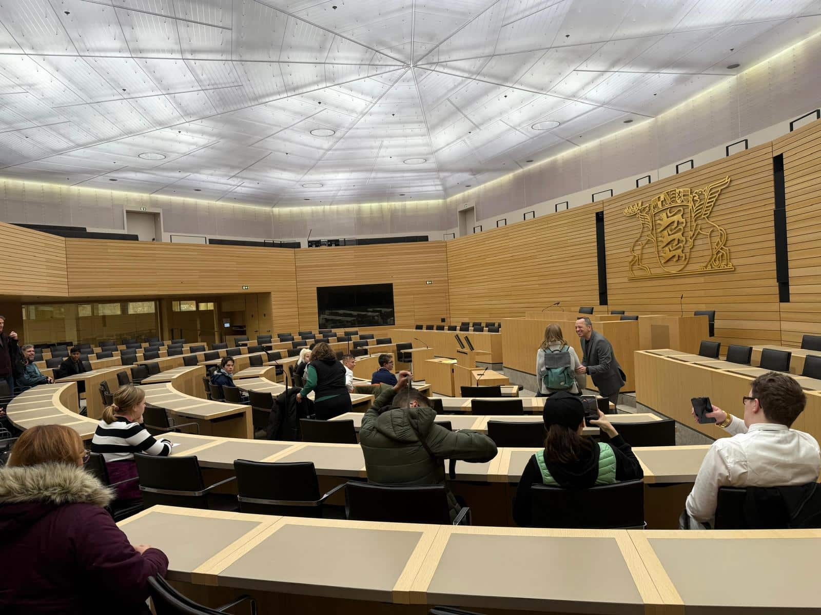 Nicolas Fink im Abgeordnetengespräch mit der Zollberg-Realschule aus Esslingen