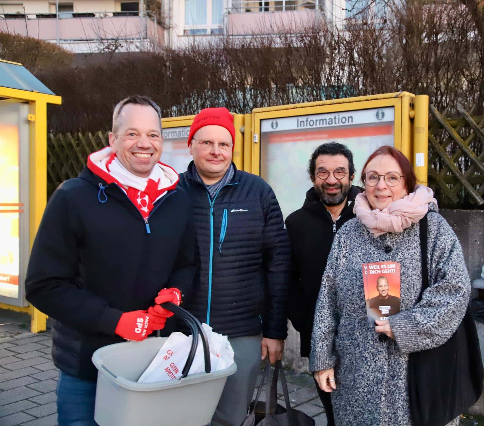 Um kurz vor sechs stand Nicolas Fink bei einem frischen und klaren Sonnenaufgang gemeinsam mit dem Team des SPD Ortsvereins Denkendorf an der Bushaltestelle. Mit dabei waren frische Brezeln 🥨 und die Flyer zur Landtagswahl.