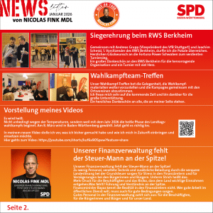 Ich freue mich auf alle Begegnungen mit euch im neuen Jahr und bin sehr positiv gespannt auf die Wahl am 8. März.